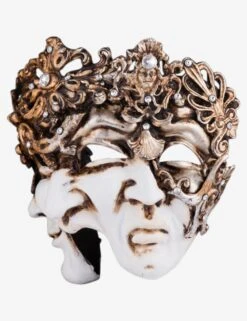 Three FacesĀ authentic venetian mask in paper mache with a unique baroque style. Ā This item is strictly handcrafted in Venice, Italy by the famous artists of the city according to the carnival tradition. Ā Each item comes with certificate of authenticity.