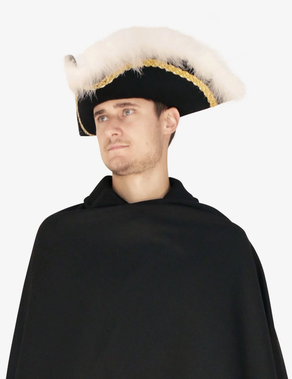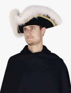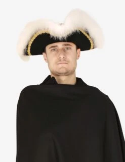 Authentic wool felt tricorn finished with marabou and gold trimmings.