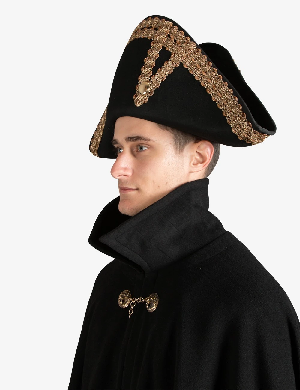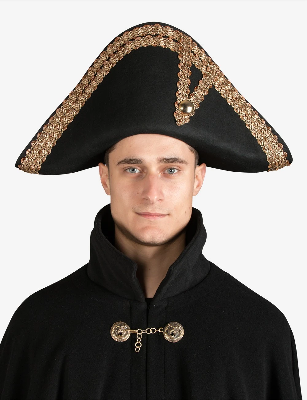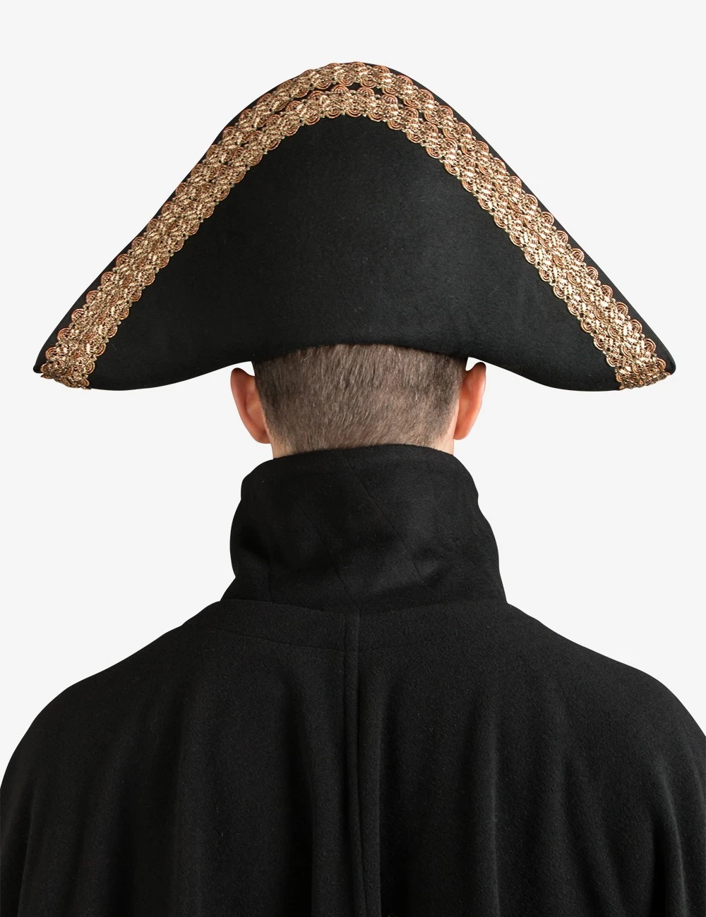 Decorated Bicorne Hat 100% made of Wool Felt decorated with antique gold trimming