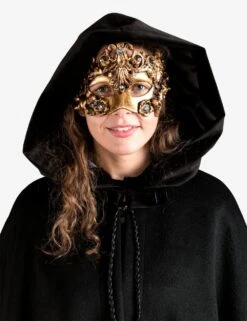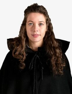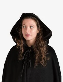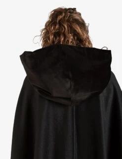 Pure wool cloak, fastening with mouse-tail cord and velvet hood with satin lining