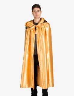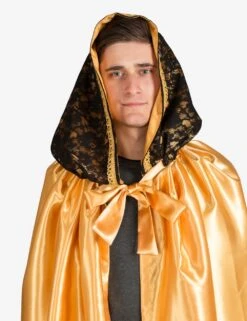 Unisex Cloak In Satin With Hood In Lace – Yellow