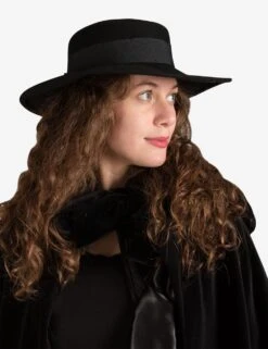 Wide Brim Hat Woman Genuine Wide-Brimmed Ladies Hat 100% made of Wool Felt decorated with a high fluted band