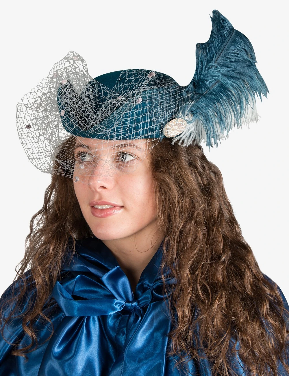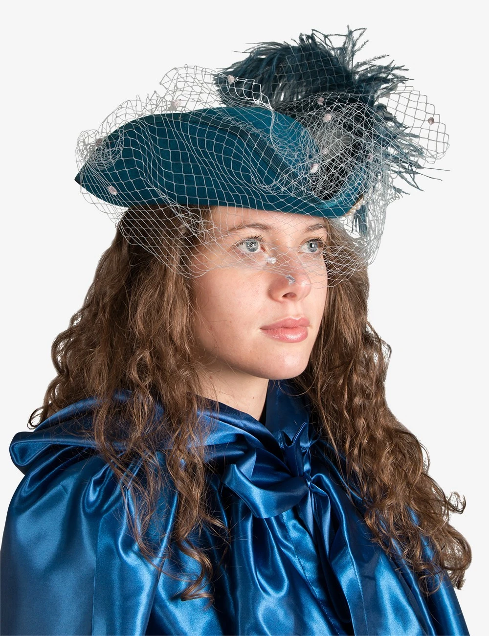 Women Tricorn With Feather & Veil Genuine Tricorne Hat 100% made of Wool Felt decorated with an Ostrich Feather and a dotted veil