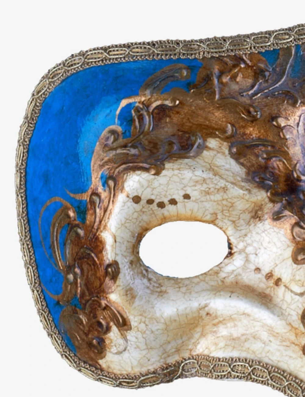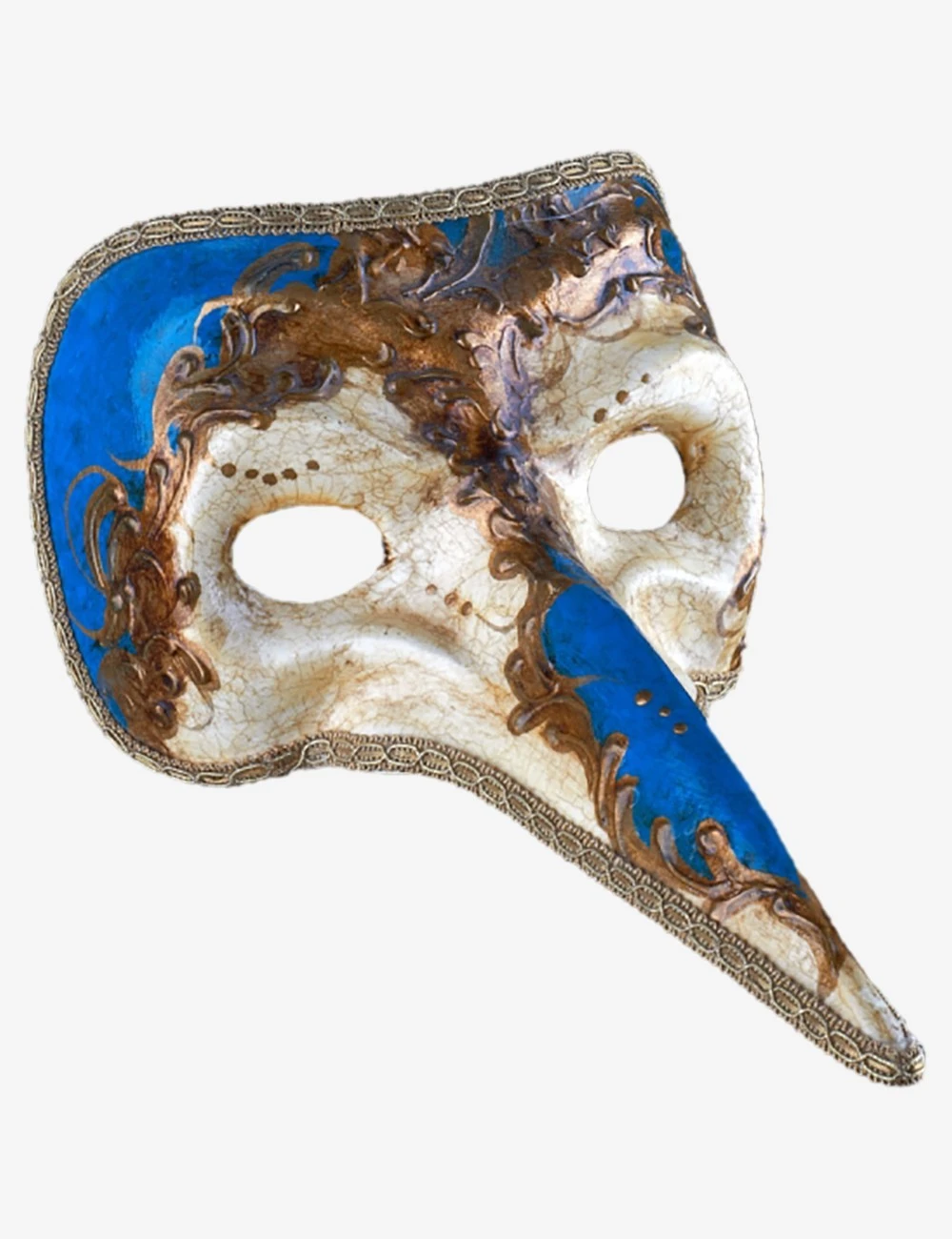 Zanni Blue Craquelé authentic venetian mask in papier mache. Handcrafted according to the original Venice carnival tradition. Manifactured in Venice by the famous venetian masters. Each item is provided with certificate of authenticity.